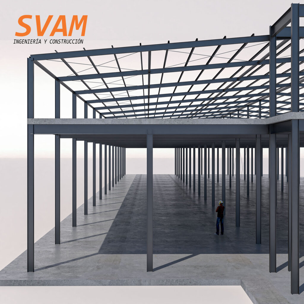 Diseñamos y calculamos estructuras de acero para viviendas, edificios, naves industriales, galpones, cubiertas, entrepisos, pasarelas y refuerzos estructurales.