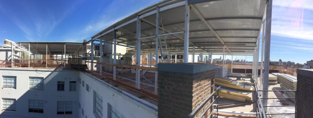 Tercer piso, sobre edificio existente. Ascensor y caja de escalera externa.